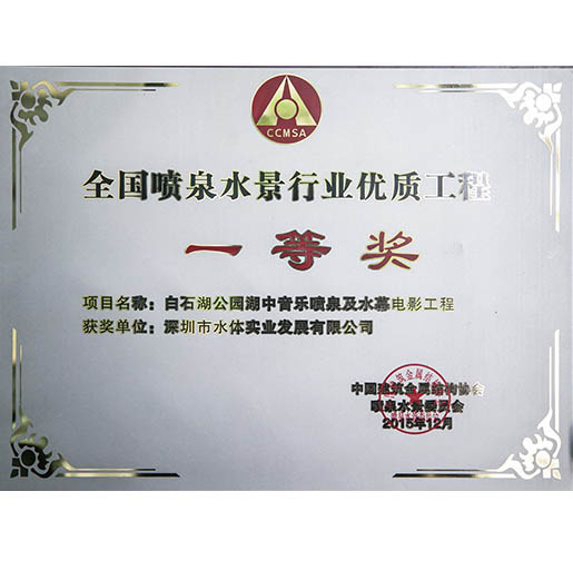 水體集團憑借雄厚的實力,一流的技術(shù),獨特的藝術(shù)魅力,取得了眾多驕人的業(yè)績,在國內(nèi)外享有較高的聲譽,曾獲得了中國建筑景觀水景噴泉十佳知名品牌、全國噴泉行業(yè)優(yōu)質(zhì)工程一等獎、全國噴泉水景行業(yè)突出貢獻企業(yè)、全國環(huán)境藝術(shù)優(yōu)秀企業(yè)、中國水景噴泉行業(yè)“重合同、守信用知名品牌”企業(yè)、第五屆國際園林景觀規(guī)劃設(shè)計大會年度優(yōu)秀景觀設(shè)計機構(gòu)獎、AAA級信用企業(yè)等殊榮。