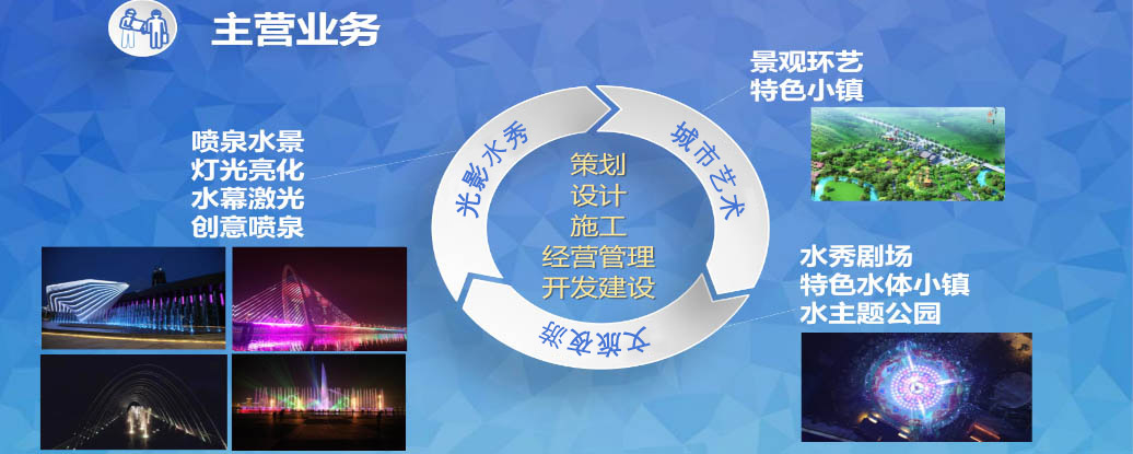 獨立研發(fā)軟件控制系統(tǒng),解決行業(yè)難題; 水秀精準感應(yīng)控制,實現(xiàn)0誤差; 四維化互動控制,人物景觀結(jié)合;