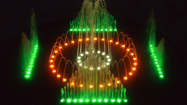 整齊統(tǒng)一的原則還應(yīng)體現(xiàn)在一個(gè)噴泉群體應(yīng)當(dāng)有一種控制要素,最常見的控制要素就是高度,對于噴泉來說常在一定位置設(shè)立一個(gè)高度很大的主噴泉,這就會(huì)產(chǎn)生一種強(qiáng)有力的印象,而一些較小的其他噴泉?jiǎng)t處于從屬地位,使得觀眾對這個(gè)噴泉群體有一個(gè)整體的感覺。整體統(tǒng)一還表現(xiàn)在動(dòng)態(tài)噴泉以一定的周期反復(fù)重現(xiàn)某一種形態(tài)的變化,這與前面所述的空間上的整體統(tǒng)一不同,是在時(shí)間上的整體統(tǒng)一。