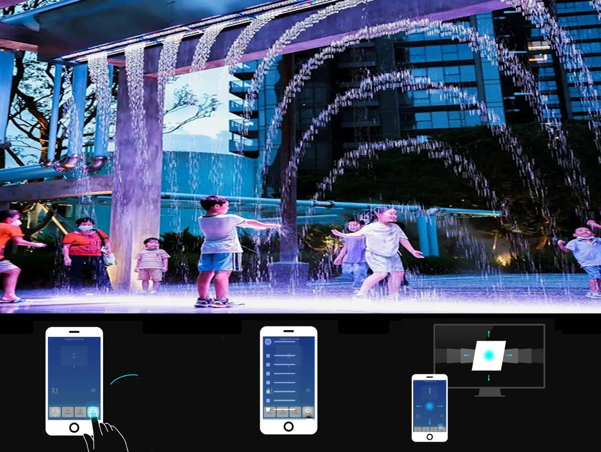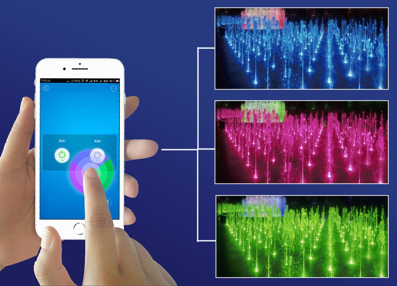 (手機(jī)通過遠(yuǎn)程控制可以實現(xiàn)噴泉水景燈光控制)